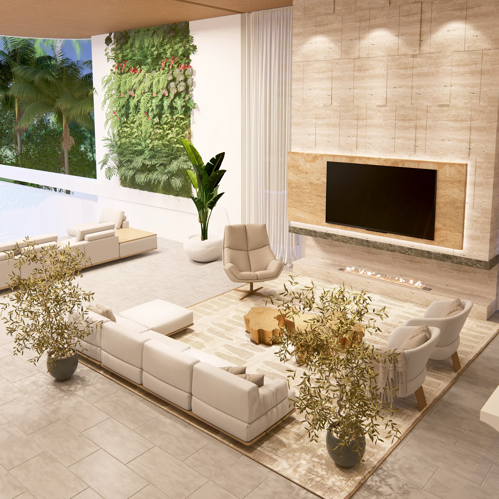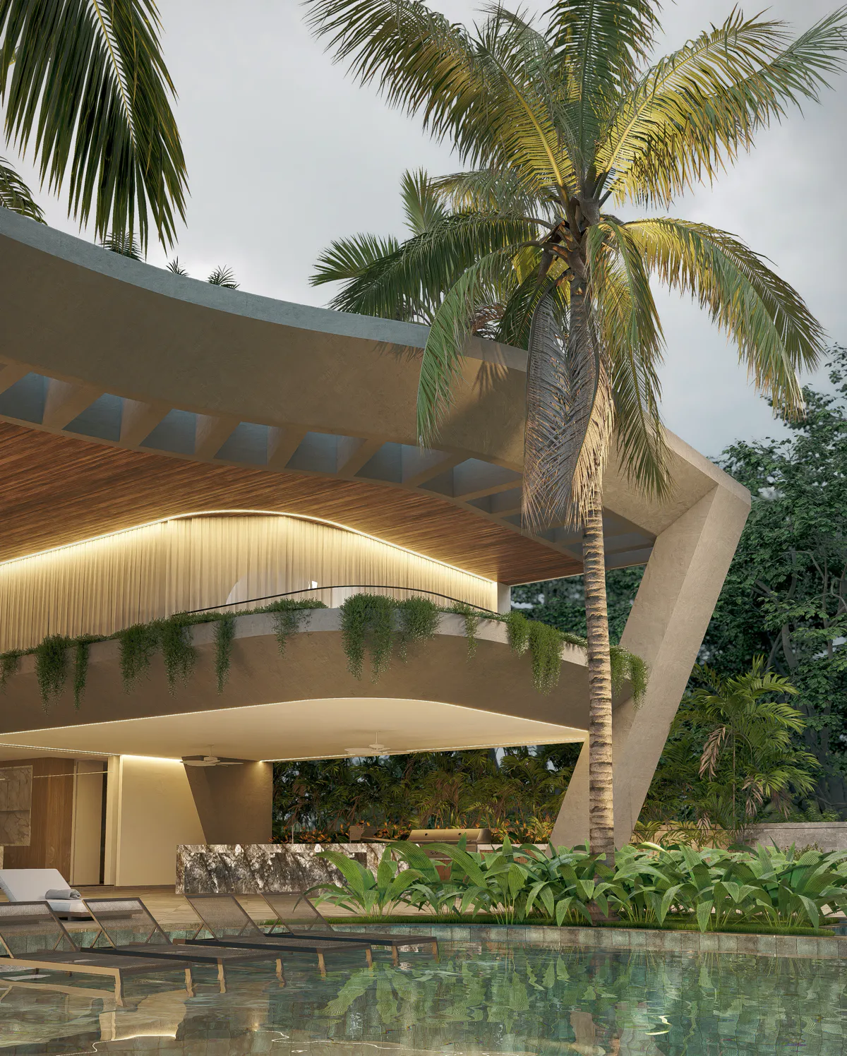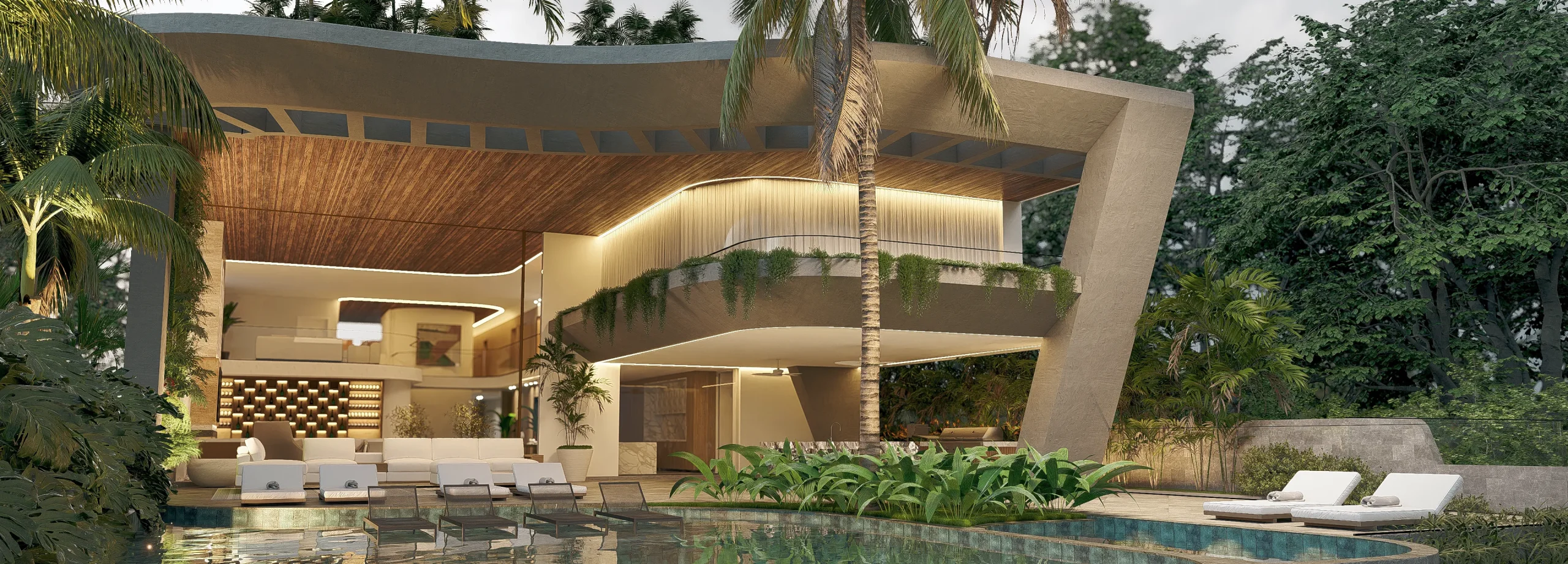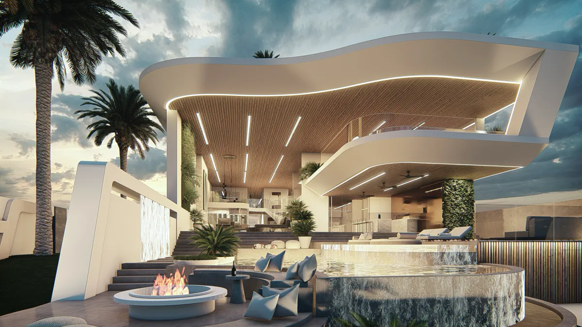 Designed to host up to 300 guests, G House balances performance and privacy. Landscape features integrated into the façade and poolside zones bring nature into the experience, while the master ensuite and upper-level terraces provide retreat-like spaces away from the crowd.